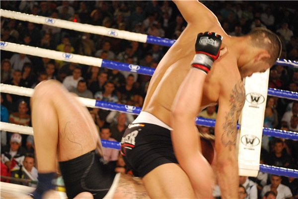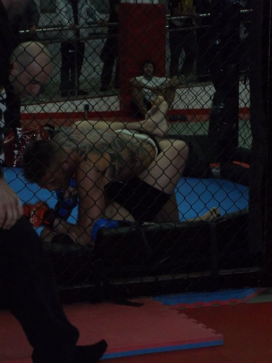 En el 1er asalto le destrozé la pierna con un par de lowkicks y en el segundo tras intervenir los médicos para " enfriarme " el pie pues apenas podia ya caminar, le volví a castigar la pierna para entrar con un clinch duro de thai, y machacar bien con las rodillas. Acabamos en el suelo, yo cogiendo una llave de pierna y al acabar el tiempo, me decidieron ganador del "Campeonato España MMA Amateur Budda sports".