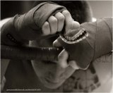 Para colmo en el primer combate debido a un intercamio y a una frontal que impacto en un codo, me fastidie el dedo meñique de la mano derecha (cosa que limitaba mi boxeo pues no podia trabajar agusto) y un dedo del pie,(lo cual hizo que me rociara un bote entero de reflex y me vendara ambos pies para que no supieran de donde fallaba).