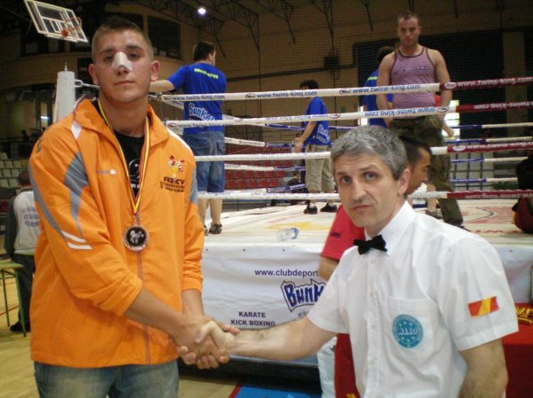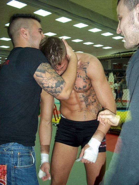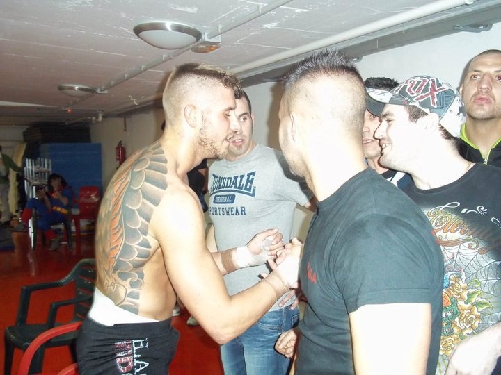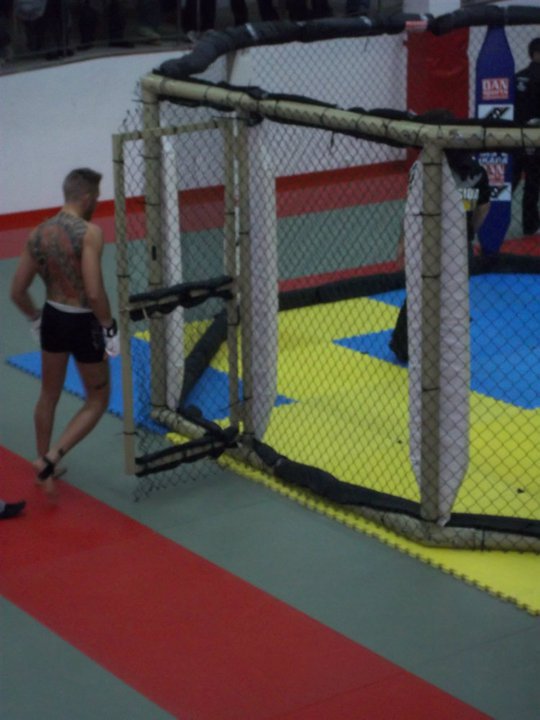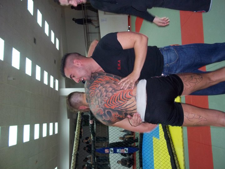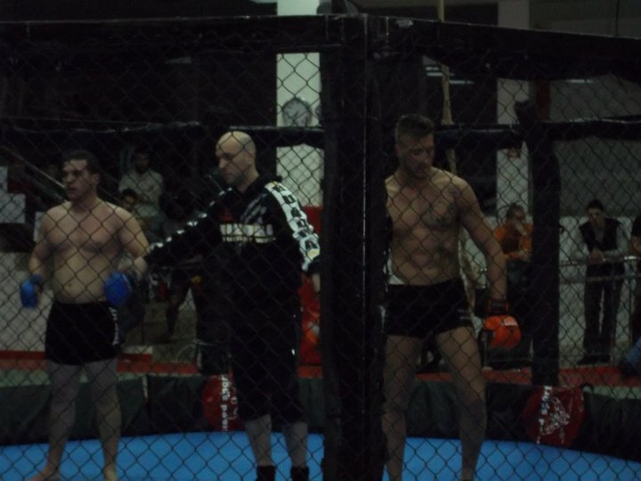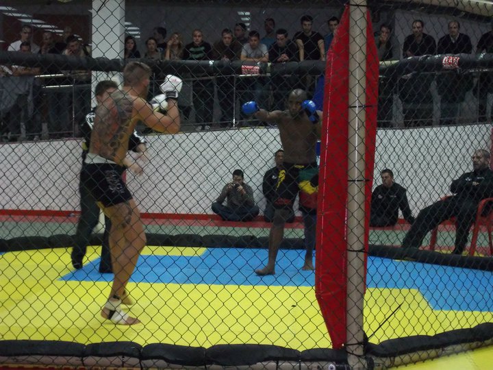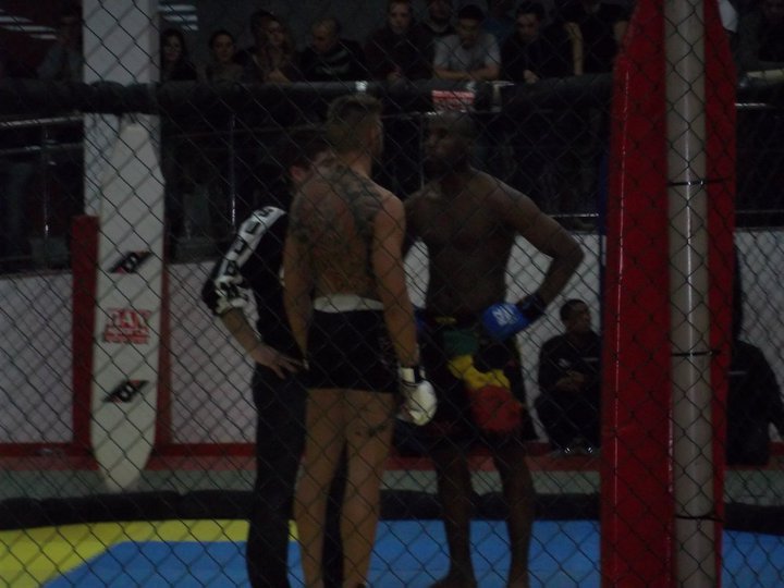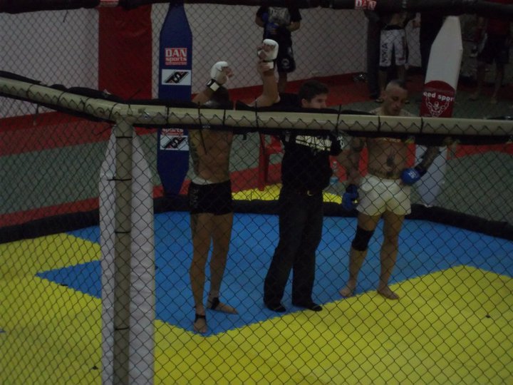El cual me introdujo en las MMA cuando impartía clases en el gym, así como un grupo de buenos amigos. En esa pelea, tras un intercambio de golpes, Victor Monfort me rompió el tabique nasal, desviándolo ligeramente con un uppercut. Me levanté e intenté continuar, pero debido a la hemorragia tan grande e incesante, el arbitro decidió parar la pelea.